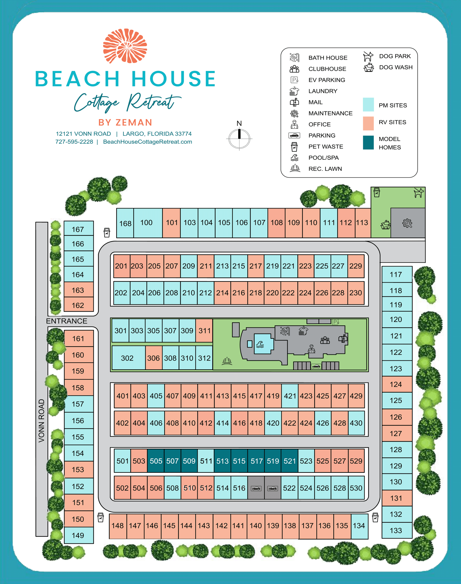 Escape to the Florida Gulf Coast and enjoy the comfort of RV living near Clearwater and St. Petersburg. At Beach House Cottage Retreat, our 55+ RV resort offers more than just a place to park—experience resort-style amenities, a welcoming community, and the relaxed coastal lifestyle you’ve been searching for.